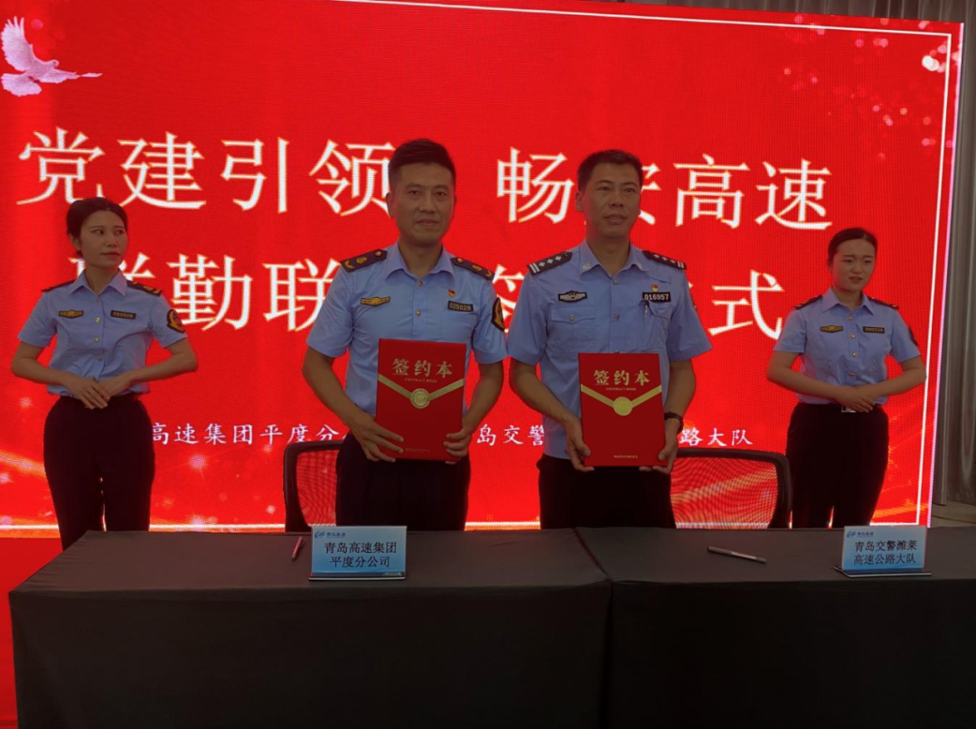仪式上,青岛高速集团平度分公司、潍莱交警大队共同签署了《“党建引领·畅安高速”联勤联动机制》合作书,确定将青岛高速集团平度服务区作为联勤联动驻点,联合潍莱高速交警二中队及运营、路产、养护、救援等四部门,正式组建起“大安全、大应急”保障体系。根据“一路五方”联勤联动工作机制,现场成立应急救援先锋队,并明确了人员分工和应急预案。活动复盘了5月12日仁兆收费站大货车起火事件救援工作过程,现场为参与救火的班组及个人颁发荣誉证书。