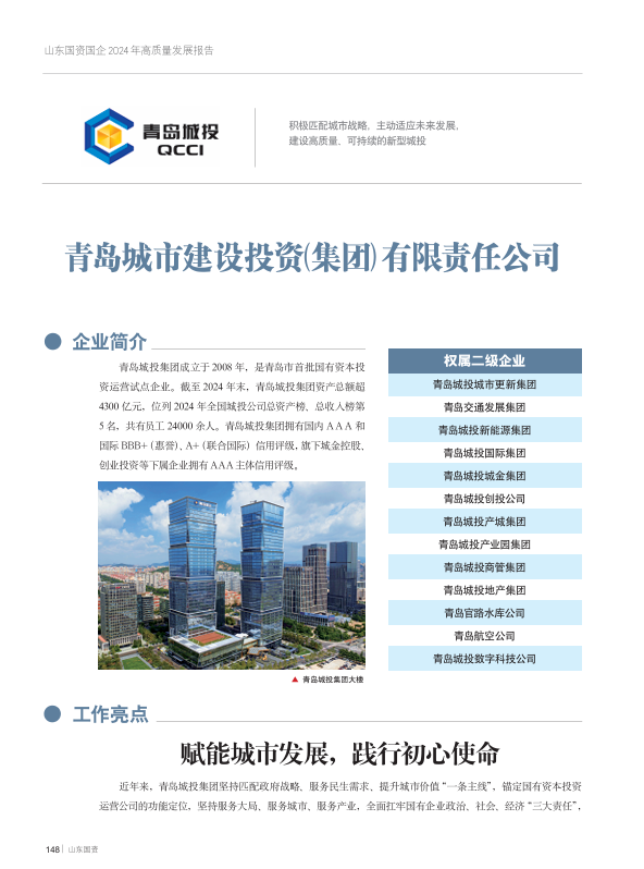 青岛城投集团入选《山东国资国企2024年高质量发展报告》