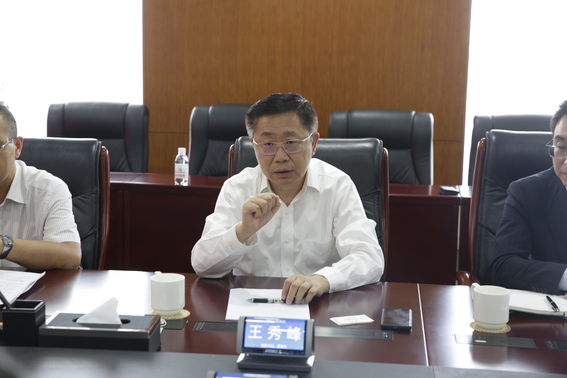 7月27日,招商公路集团董事长王秀峰一行到访城投集团,集团党委书记、董事长陈明东,党委副书记、总经理臧毅杰出席座谈。