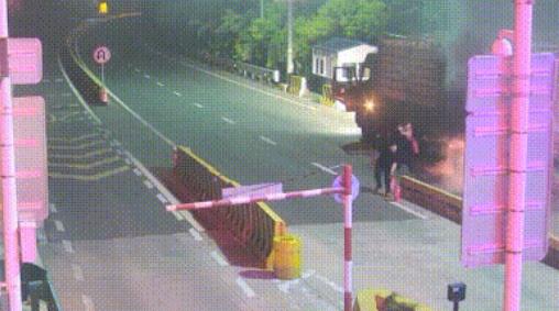 “嘀嘀,嘀嘀... ...”5月12日凌晨3点多,一阵急促的鸣笛声引起了青岛城投集团旗下交发集团平度管理处仁兆收费站当班收费人员的注意。此时,一辆后部轮胎蹿出明火的四轴大货车正由匝道急速驶下高速公路,浓烟滚滚,情况十分危急。见此情景,当班收费班长姜学芬立即通过对讲机通知出口收费员抬杆放行,并指挥车辆驶向广场安全区域。仁兆收费站迅速启动应急响应预案,第一时间汇报现场情况,联系驻地消防工作人员,并组织班内人员拿